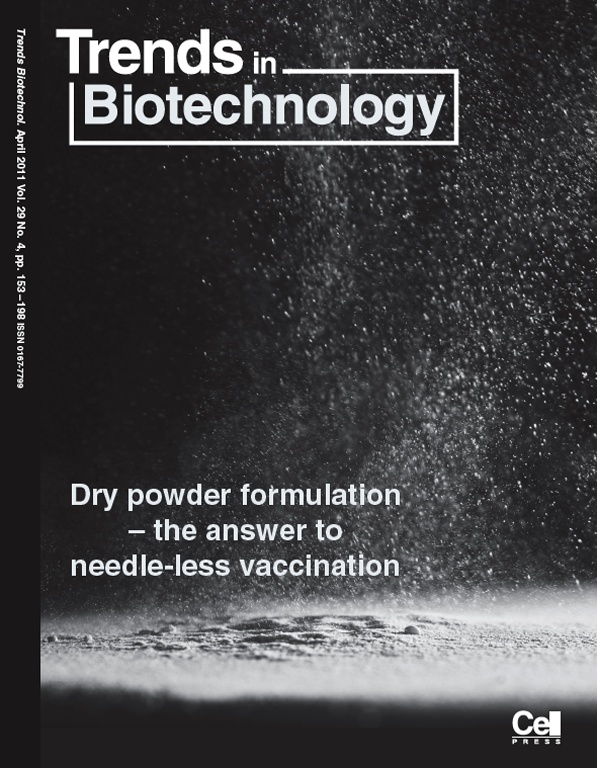 Sou T, Meeusen EN, de Veer M, Morton DAV, Kaminskas LM, McIntosh MP. New developments in dry powder pulmonary vaccine delivery. Trends Biotechnol. 2011;29(4):191-8. DOI: https://doi.org/10.1016/j.tibtech.2010.12.009. (Journal cover)